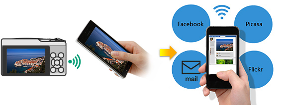 Udostępnianie zdjęć w Internecie jest łatwe dzięki bezprzewodowemu przesyłaniu danych z aparatu bezpośrednio do smartfonu.