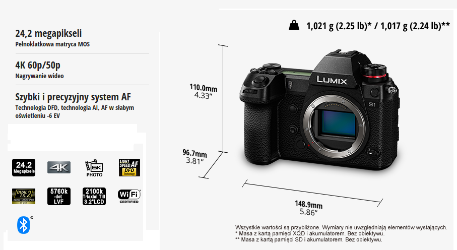 Panasonic Lumix DC-S1 to pierwszy pełnoklatkowy aparat cyfrowy firmy Panasonic. Pełnoklatkowa