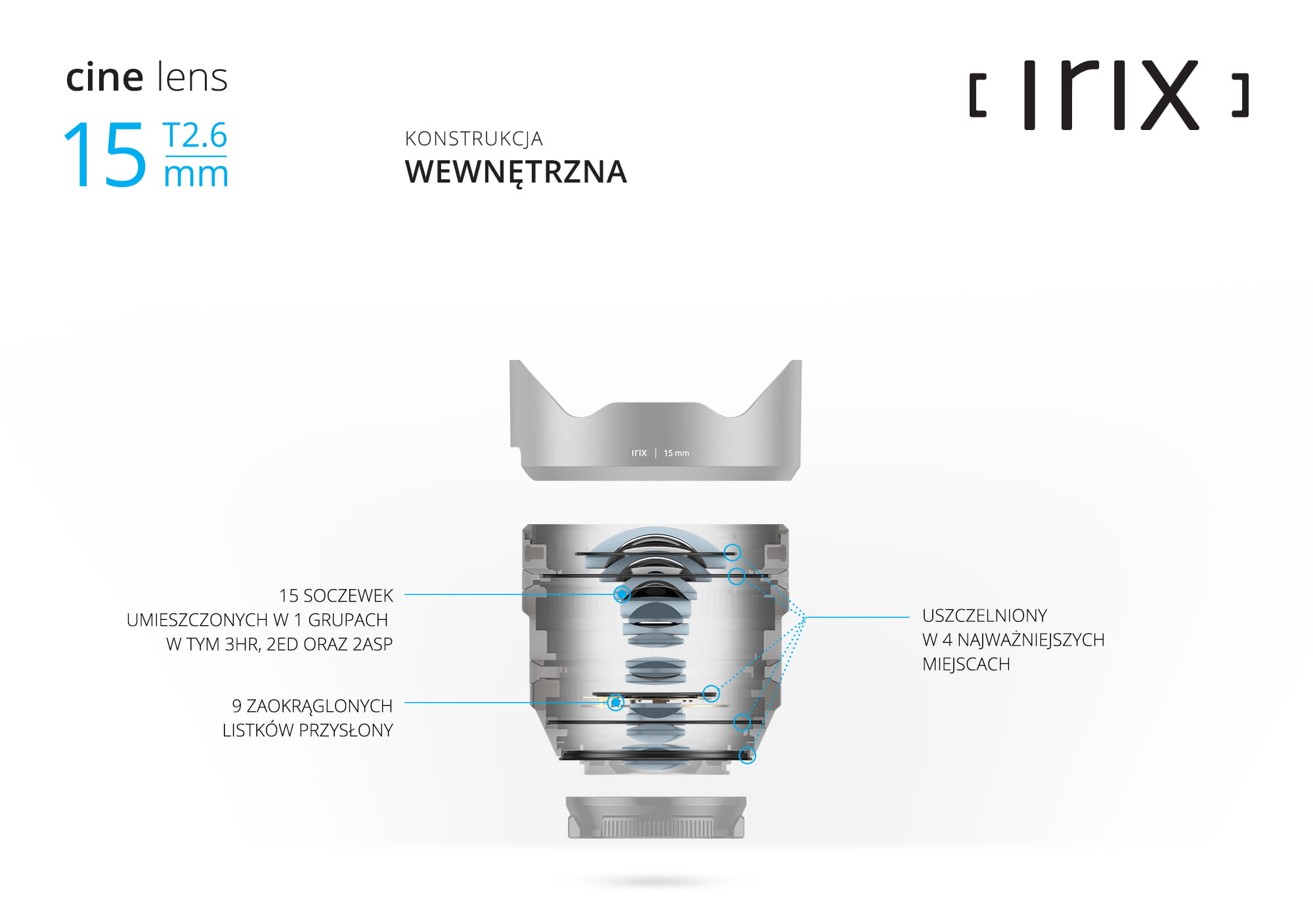 Irix wie, jak ważna jest ochrona przed kurzem i wilgocią. Irix 15mm T2.6 oferuje standardowo uszczelnienie pogodowe w 4 kluczowych miejscach! (3 dla wersji PL-mount)